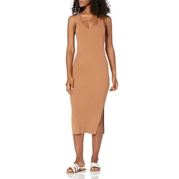 The Drop Women's Yasmin Side Slit Midi Sweater Tank Dress - Earth (Large)