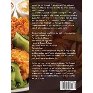 This cookbook is not just a collection of recipes but a pathway to better eating habits and enjoyable cooking experiences. With The Easy Big Boss Air Fryer Cookbook For Beginners, you will find yourself excited to explore new flavors and revisit classics, all while saving time and money. Each meal is a chance to create wonderful memories with loved ones around the table, elevating everyday dining into a joyful occasion. Embrace the ease and delight of cooking with this indispensable kitchen companion!