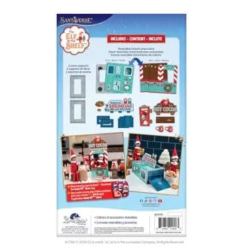 Show more Bring joy and creativity to your holiday traditions with the Instant The Elf on the Shelf Pop Up Scenes kit! This enchanting 2-in-1 Insta-Moment Props elf kit is designed to ignite the imagination of kids and families alike. On one side, you’ll discover a delightful hot cocoa stand, perfect for winter gatherings, and on the other, a whimsical magical shrinking machine, where kid-sized cookies transform into delicious elf-sized treats. The easy two-scene setup allows for effortless switching of backdrops to keep the festive spirit alive.