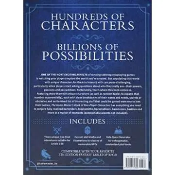 Why You Will Love This Product?This book not only saves precious preparation time for your RPG sessions but also enriches the storytelling experience for both the DM and the players. With characters that inspire laughter and intrigue, your campaigns will transform from mundane to memorable, ensuring your players remain captivated and excited for every session. Having such a rich resource readily available means you can focus more on storytelling and less on the logistics of character creation.