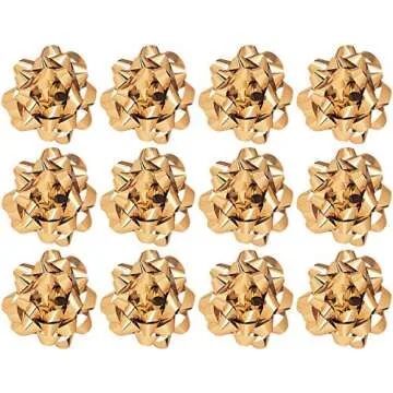 Unlike many other bows on the market, The Gift Wrap Company's Decorative Confetti Bows stand out with their unique gold metallic design, providing a striking and sophisticated appearance. While other bows may fall short in terms of adhesive quality and craftsmanship, these bows have been highly rated by users for their impressive durability and vibrant color consistency. Additionally, their easy application process sets them apart from more traditional, less user-friendly options.