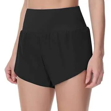 THE GYM PEOPLE Women’s Quick Dry Running Shorts Mesh Liner High Waisted Tennis Workout Shorts Zipper Pockets (Small, Black)