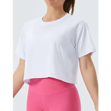 THE GYM PEOPLE Women's Workout Crop Top T-shirt Short Sleeve Boxy Yoga Running Cropped Basic Tee White