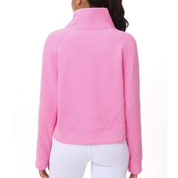 THE GYM PEOPLE Women's Half Zip Pullover Fleece Stand Collar Crop Sweatshirt with Pockets Thumb Hole Pink