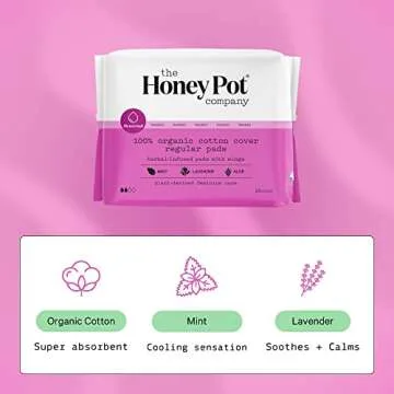 Show moreIntroducing The Honey Pot Company Clean Cotton Regular Absorbency Pads, a revolutionary approach to feminine hygiene that combines the soothing effects of herbal ingredients with advanced absorbent technology. These herbal-infused pads are not just another addition to your period care arsenal—they are a supportive ally during your menstruation. Infused with lavender, rose, aloe vera, and mint, these pads are designed to deliver a comforting, cooling sensation that transforms your experience during menstruation. The organic cotton cover ensures breathability and comfort, while the ultra absorbent wood pulp core effectively prevents leakage, giving you the confidence to go about your day feeling fresh and protected.