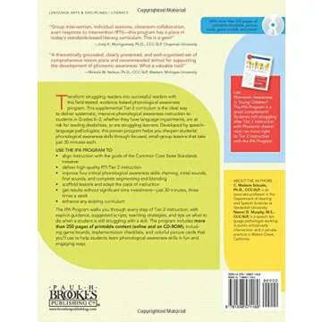 The Intensive Phonological Awareness (IPA) Program is a groundbreaking educational tool designed specifically for educators who teach beginning or struggling readers. This innovative program does not come with a CD; instead, it offers comprehensive downloadable resources available via a direct link provided in the book, ensuring that all the necessary materials are right at your fingertips. With its focus on phonological awareness, the IPA program provides structured games and activities...