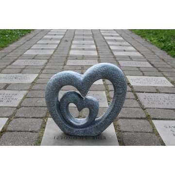 Show moreDisplay your love for all the world to see with the stunning Nesting Hearts Garden Statue. This beautifully crafted piece features a romantic pair of hearts nestled together, making it an elegant addition to your garden decor and yard art. Created from weather-resistant polyresin, it is designed to withstand the extremes of heat, cold, rain, and snow, ensuring that your heartfelt tribute remains intact for years to come.