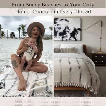 The Loomia 100% Cotton Striped Turkish Throw Blanket for Home Decor, Beach and Picnic (Cream Ivory, XL, 50"X86")