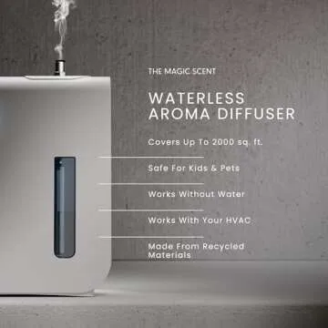 Show more Introducing the Magic Scent Diffuser, your ultimate companion in creating an inviting and calming atmosphere in any environment! This remarkable nebulizing essential oil diffuser is not only perfect for enhancing your home but is also tailored for use in commercial spaces. Engineered with revolutionary cold-filtered air pressure technology, it efficiently converts your favorite essential oils into a fine mist of nanoparticles that permeate the air, ensuring a consistent and soothing aroma that enriches your surroundings. Unlike traditional diffusers, our waterless design prevents residue buildup and extends the life of your cherished scents, making it the gentlest and most effective solution for a tranquil environment.