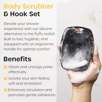 Show moreIntroducing The Man Body Scrubber & Hook, the ultimate shower companion for men seeking a superior bathing experience! Crafted from high-quality, non-porous food-grade silicone, this body scrubber is not just a tool; it's an upgrade to your daily hygiene routine. Its soft bristles gently exfoliate your skin while deeply cleansing, ensuring you achieve a refreshing and invigorating clean every time. Say goodbye to outdated loofahs and sponges, and embrace a more hygienic option that contributes to healthier skin.