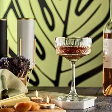 Show moreIntroducing the exquisite Mask El Turko Vintage Coupe Glasses Set, your ultimate companion for elevating every sip and every occasion! Crafted with a beautiful vintage design, these glasses marry intricate craftsmanship with modern elegance, making them perfect for everything from elegant cocktails to delightful desserts. Each glass measures a generous 8.8oz (260ml) and stands at a lovely 6.5 inches tall, ensuring the ideal hold and presentation for your favorite drinks. Their beautiful silhouette adds a dash of sophistication, making them the perfect addition to your home bar.