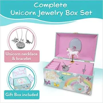 The Memory Building Company Unicorn Musical Jewelry Box, Classic Melody Storage Organizer Kids Ages 6-12, Wood Construction w/ 2 Compartments