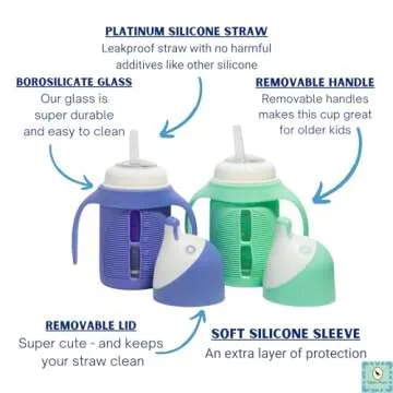 Show more Introducing The Minis - Set of 2 Mini Glass Straw Sippy Cups: a perfect blend of functionality and safety for your little ones! Crafted by Tabor Place, this set includes one Mint Green and one Indigo cup, both designed to be practically spill-proof, ensuring a worry-free experience for parents. Constructed from durable 5oz borosilicate glass, also known as Pyrex, these cups are not just non-toxic but also shatter-resistant, making them the ideal choice for toddlers who are still mastering their grip.