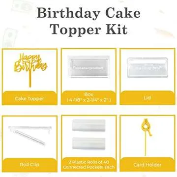 The Money Cake - Money Cake Pull Out Kit Includes 1 Money Box 2 Plastic Roll 40 Transparent Bag Connected Pocket Each, and 2 Surprise Cake Toppers for Birthday and Graduation Parties