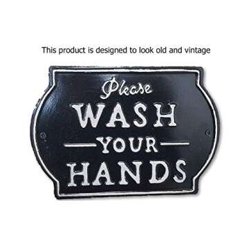 THE NIFTY NOOK "Please Wash Your Hands Vintage Metal Farmhouse Sign for Bathroom & Kitchen Décor 8.5" x 6" (Small Black)