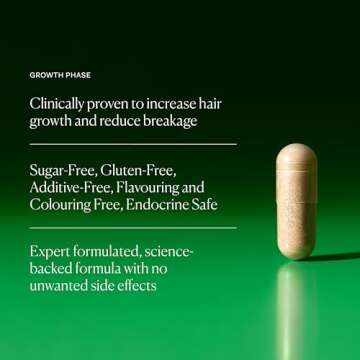 The Nue Co. GROWTH Phase Supplement, Supports Hair Growth, Reduces Breakage, Thicker & Fuller Hair, Contains Vitamins, Reishsi Mushrooms, Proteins & Adaptogens, Vegan, Gluten Free, 30 Capsules