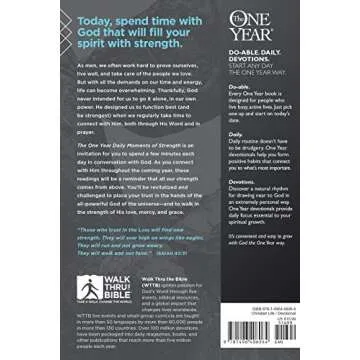 Why You Will Love This Product?Embracing the **One Year Daily Moments of Strength** means investing in a year of daily wisdom and inspiration that molds character and builds resilience. This devotional not only uplifts you spiritually but also instills a sense of community, as you journey through each day alongside like-minded individuals. It encourages you to think deeply about your life, purpose, and relationship with God, making it a truly enriching experience.