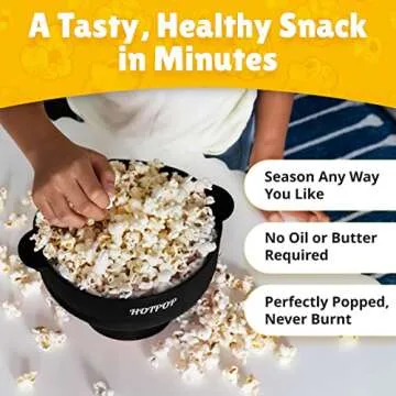 Show more Introducing the ultimate solution for popcorn lovers: the Hotpop Silicone Microwave Popcorn Popper. This innovative kitchen gadget is designed to bring the joy of theater-style popcorn right into your home, making it easier than ever to prepare fresh popcorn in just minutes. Simply add your favorite kernels, seasonings, and pop it in the microwave for a delicious snack that everyone will adore. Whether hosting a movie night or simply craving a crunchy treat, this popcorn popper has got you covered!