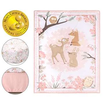 The Peanutshell 3 Piece Baby Crib Bedding Set for Girls - Woodland Theme for Newborn & Toddler Nurseries