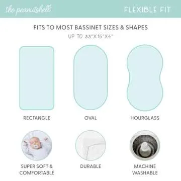 The Peanutshell Baby Bassinet Sheets 4-Pack - Soft, Oval & Fitted Covers for Crib