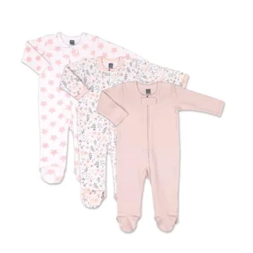The Peanutshell Baby Sleepers for Girls Set of 3-0-3 Months Baby Clothes, Soft Cotton Baby Girl Footed Pajamas, Newborns & Infants Baby Clothes Gift Set - Flower Pink