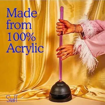Show more Introducing the ultimate blend of style and functionality – the Staff Acrylic Toilet Plunger. This delightful bathroom accessory takes the mundane task of unclogging to new heights, making it a standout addition to any home. It's not just about practicality; it's about adding a dash of flair to your space. The vibrant colors allow you to personalize your bathroom while ensuring that a necessary tool doesn’t have to be an eyesore any longer. With its sleek and sanitary design, the Staff Plunger comes equipped with a chic drip tray that keeps your floors mess-free while enhancing your bathroom decor.