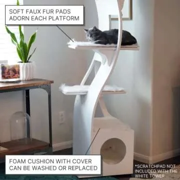 Show moreThe Refined Feline 69 Inch Tall White Lotus Cat Tower redefines cat furniture, combining style and functionality in one elegant package. Crafted from high-quality oak veneer over durable bent plywood, this stunning cat tower not only serves as a playground for your feline friends but also a sophisticated addition to your home decor. Standing at an impressive 69 inches, it’s perfect for multi-cat households, providing ample space and verticality for climbing, lounging, and entertaining. Available in four rich oak finishes, including a sleek white model, this cat tower is designed to blend seamlessly with your living space while keeping your cats engaged and happy.
