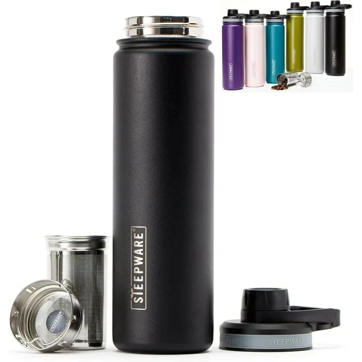 Keep Your Tea Hot & Cold For Longer: This insulated tumbler functions as a tea thermos and has a huge, ultra-fine tea infuser inside of a stylish, double-walled, vacuum-sealed body. This keeps your beverages hot for 6 hours and cold for 12 hours. Also, our tea bottle's mouthpiece is kept clean and covered between drinks thanks to the screw-down lid, which also makes it leakproof.