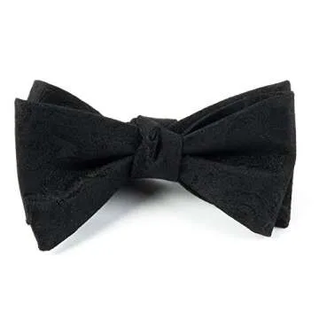 The Tie Bar 100% Woven Silk Black on Black Designer Paisley Self-Tie Bow Tie