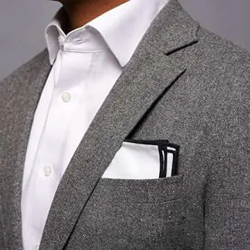 The Tie Bar Men’s Pocket Square, Solid White with Navy Border, Cotton, 12 inches