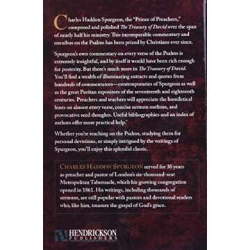 The Treasury of David provides in-depth commentary on each psalm, sharing insights and reflections to enhance understanding and facilitate daily meditation.