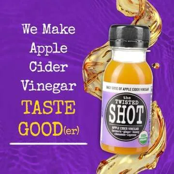 Show more The Twisted Shot is not just any wellness drink; it's your daily ritual redefined! This innovative apple cider vinegar shot is expertly crafted to combine potent ingredients like ginger, turmeric, cinnamon, cayenne, and honey, providing a delightful fusion of flavors that supports your wellness journey. Each shot is packed with organic, unfiltered apple cider vinegar containing the "mother," renowned for its health benefits and natural probiotic qualities. Whether you’re looking to boost your digestion, enhance your immunity, or simply integrate a healthier choice into your routine, The Twisted Shot makes it seamless and delicious.