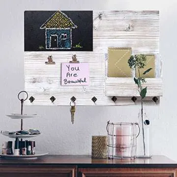 Show moreTransform your space with The Ultimate Rustic Wall Organizer, a multifunctional and stylish addition that beautifully combines functionality with aesthetic appeal. Designed to enhance your home organization, this innovative 4-in-1 key holder not only serves as a key holder and mail station but also features a delightful chalkboard for notes and creative expression. Crafted with a keen eye for design, this board is perfect for any home looking to maintain charm while keeping clutter at bay.