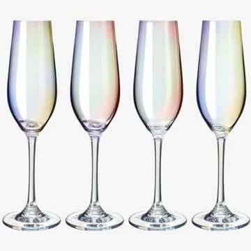 Show more Introducing the exquisite champagne flute set from Wine Savant’s Iridescent Collection—a stunning addition to any household, bar, or restaurant that truly redefines elegance in drinkware. Crafted with excellent craftsmanship, these flutes feature a long stem that exudes class while the mesmerizing colors offer a trendy alternative to conventional glassware. Every glass is designed to create a pearlescent glimmer that complements your champagne beautifully, ensuring that each moment is magical.
