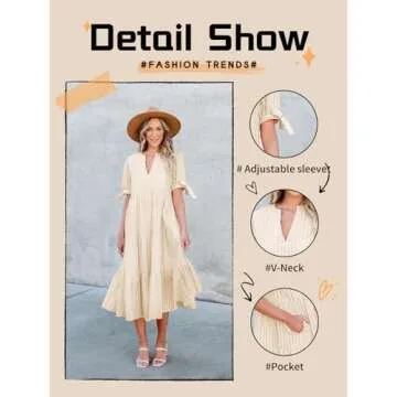 Show more Introducing the enchanting Theenkoln Ginghams Tiered Midi Dress, a must-have addition to every woman's wardrobe! This stunning V-shaped neckline dress features charming short puff sleeves with tie cuffs, offering an effortless blend of comfort and style. Made from high-quality polyester fabric, it boasts breathability and a luxurious feel that makes it perfect for any occasion. Whether you're headed to a casual outing or a formal event, this straight cut midi dress seamlessly embodies sophistication.