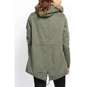 TheMogan Women's Sherpa Fur Lined Hooded Drawstring Anorak Parka Olive 2XL