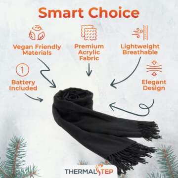 ThermalStep Heated Scarf for Men and Women–Rechargeable with 3Temperature Settings Keep Warm up to 8Hours, Soft, Portable Neck Heating Pad for Neck Pain Relief, Electric Heated scarf, Battery Included