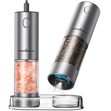 ThermoMaven Electric Salt and Pepper Grinder Set - Automatic, Rechargeable, Adjustable Coarseness