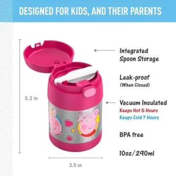 THERMOS FUNTAINER Insulated Food Jar, 10 Ounce, Kid Friendly Food Jar with Foldable Spoon, Peppa Pig