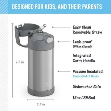 Show moreDiscover the ultimate hydration solution for your little ones with the THERMOS FUNTAINER Water Bottle with Straw. Designed specifically for kids, this 12-ounce stainless steel water bottle combines form and function to create an ideal companion for school, sports, and outdoor adventures. Featuring advanced vacuum insulation technology, it keeps drinks cold for up to 12 hours. Parents can enjoy peace of mind knowing that their children are staying hydrated with refreshing cool water, even on the hottest days.