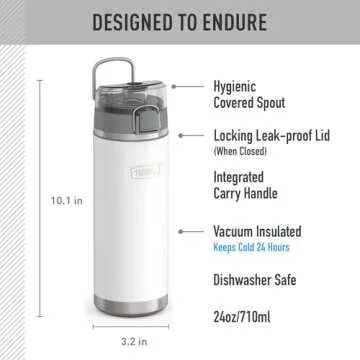 THERMOS ICON SERIES Stainless Steel Water Bottle with Spout - 24 Ounce, Snow - Vacuum Insulated Water Bottle with Lid