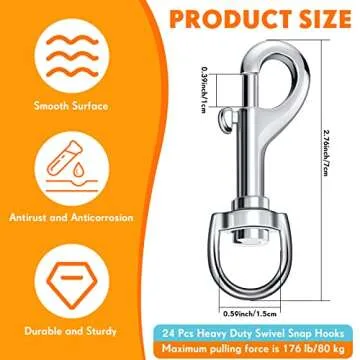 Show moreIntroducing the Therwen 24 Pcs Swivel Snap Hooks, your ultimate solution for versatile fastening needs! Each pack contains 24 durable clip hooks, perfect for a wide array of applications such as dog leashes, keychains, camera straps, and much more. Designed with practicality in mind, these snap hooks measure a convenient 2.76 inches, making them suitable for everyday tasks while maintaining a sleek and compact form. Crafted from high-quality zinc alloy, their robust construction ensures they handle both light and heavy-duty functions with ease. Whether you're crafting or simply need reliable clips for your pets’ accessories, these versatile hooks are ideal for enhancing your lifestyle.