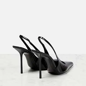 Show moreThe THESHY Women's Pointed Toe High Stiletto Heels Slingback Pumps redefine elegance with their chic design and comfortable fit. Crafted from glossy patent leather, these fashionable dress shoes feature a sleek and slender heel measuring approximately 4.13 inches (10.5 cm) that beautifully enhances your silhouette. The pointed toe design not only adds a touch of sophistication but also elongates the leg, while the stretchy slingback ensures a personalized fit that hugs your foot for all-day comfort. Designed with a non-slip rubber sole, these pumps provide stability and confidence with every step. Perfect for special occasions or adding flair to your everyday wardrobe, these shoes are an essential addition to every woman's closet.