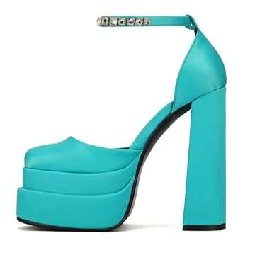 Show moreStep into elegance and confidence with the THESHY Women’s Platform Chunky High Block Heels. These stunning ankle strap dress pumps, in a chic Lake Blue, are designed for the modern woman who values both style and comfort. With a generous heel height of approximately 5.51 inches (14 cm) and a platform measurement of about 9.84 inches (25 cm), these heels offer the perfect balance between height and stability. The square toe design and sleek, chunky heel create a fashion-forward silhouette that complements any wardrobe. Whether you're dressing up for a special occasion or simply want to elevate your everyday look, these platform heels make a striking statement.