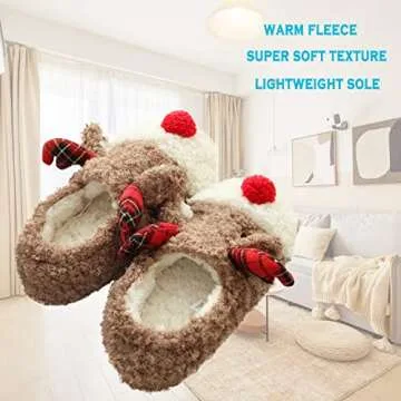 Why You Will Love This Product? The Thgonwid Women's Christmas Cute Deer Plush Slippers are the perfect addition to your winter wardrobe. They embody not just warmth, but a sense of joy that enhances your comfortable, everyday experiences. Imagine the pleasure of slipping into these charming reindeer slippers after a long day—your toes will thank you! Enjoy compliments from family and friends as you showcase these festive slippers that invite relaxation and cheer into your home. Transform your downtime with slippers that marry style and seasonal spirit effortlessly!