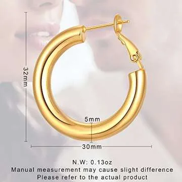 Thick Gold Hoop Earrings for Women 14K Gold Plated Chunky Hoops Hypoallergenic Lightweight Hollow Tube Earrings 30mm