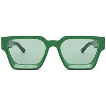 Thick Retro Square Sunglasses for Men Women Chunky Simple Designer Style Rectangle Shades with UV400 Protection(Green Frame/Green Lens)