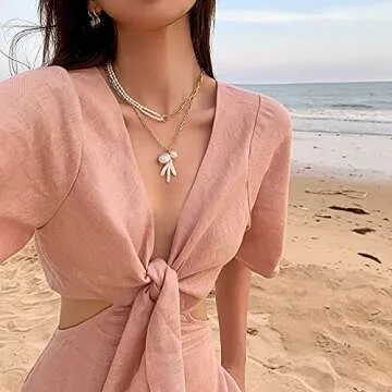 Thin Gold Chain Link Choker Necklaces, Dainty Double Layers Stitching Necklace Mini Pearls Choker Necklaces for Mother's Day Gift
