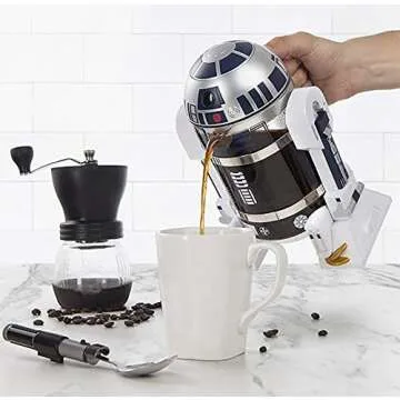 Why You Will Love This Product?The ThinkGeek Star Wars R2-D2 Coffee Press enhances your morning ritual, making it an enjoyable and delightful experience. With each brew, you can relive cherished moments from the Star Wars saga, all while savoring a freshly brewed cup of coffee. This coffee press isn't just about function; it's about bringing joy, nostalgia, and a feeling of connection to a beloved universe into the everyday act of making coffee. You'll adore having this whimsical piece brighten your kitchen and inspire conversations among guests and family.