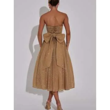 Thinyfull Women’s Glitter Tulle Prom Dresses Midi Strapless Sleeveless Aqua Formal Evening Party Dress Ruched Bow Tie Cocktail Gown US0
